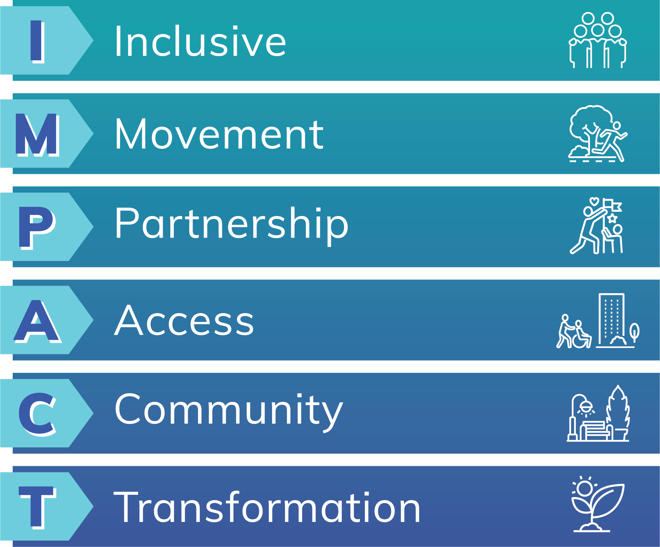We are on a mission to get ALL people – and communities – moving toward healthier, more active lifestyles. We partner with community organizations to work toward equal access and opportunities for everyone to engage in activities that are essential for a vibrant and healthy life. Join us in our commitment to creating inclusive initiatives that positively transform community health and fitness.
